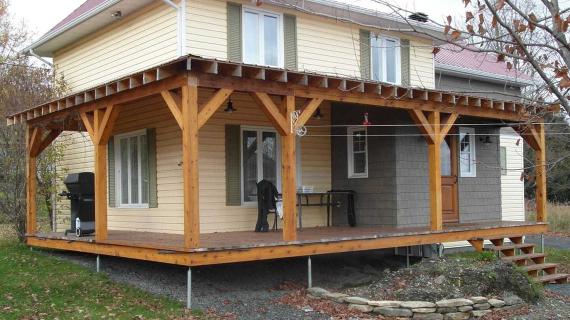 Одним из самых распространенных вариантов является каркасный метод строительства. Он позволяет построить надежную и долговечную конструкцию, подходящую как для дачных участков, так и для капитальных зданий. Каркас может быть выполнен из металлических профилей или деревянных балок, после чего обшивается различными материалами. В зависимости от проекта и климатических условий, для отделки применяются панели, брус, ДПК или поликарбонат. Такой способ возведения обеспечивает оптимальное соотношение стоимости и качества, а также позволяет пристраивать террасу практически к любому зданию.